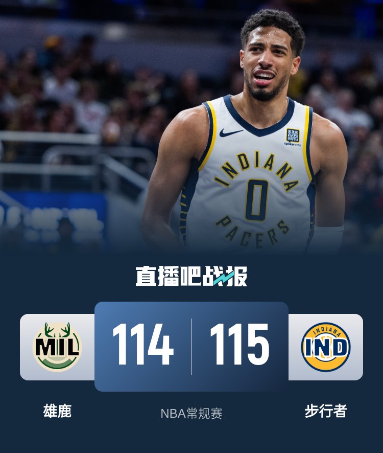 哈利伯顿3+1绝杀!字母哥19+17+7 步行者7人上双力擒雄鹿