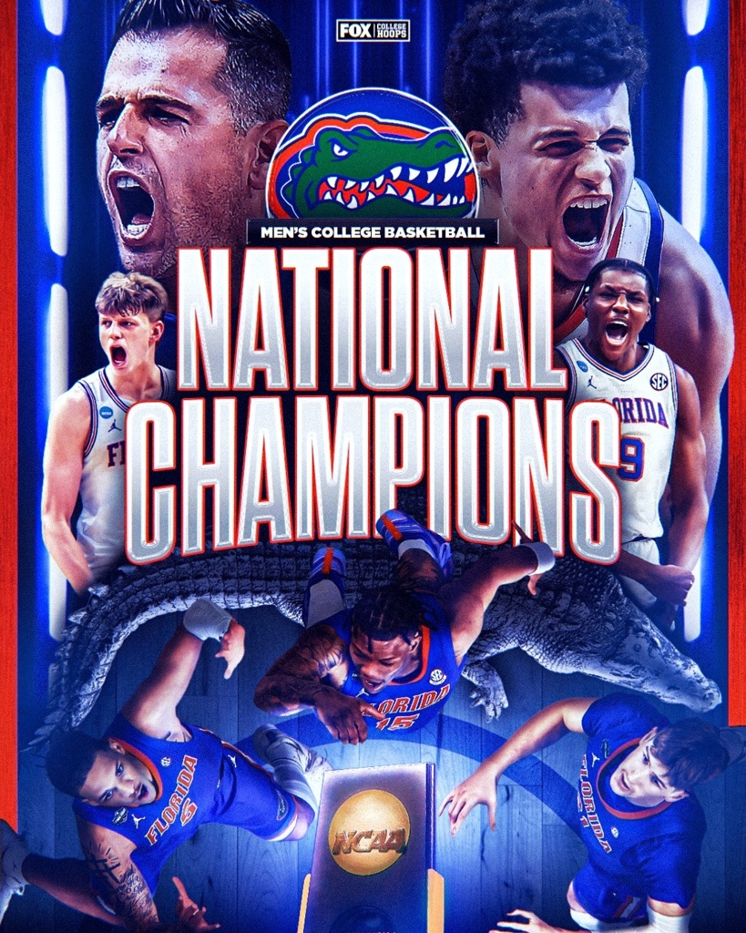 下半场克赖尔上来飚进两记三分独得7分,休斯敦大学抢开局送上11-2的攻势直接拉开12分的优势;但佛罗里达大学迅速叫了暂停并迅速奇效,康顿和克莱顿连续拿分为球队破荒并回敬12-3的攻势再度追上比分,末段还没有运动战进球的克莱顿突然找到手感连续两次2+1为球队抹平比分。决胜时刻休斯敦占优的局面下连续三次失误,康顿期间两次抢断并帮助马丁两罚命中取得自开局后第一次领先,随后休斯敦绝杀球权再度失误直接葬送比赛。最终,佛罗里达大学一路被动之下最后时刻翻盘击败休斯敦大学夺得年度总冠军,同时也是队史第三次夺冠。
