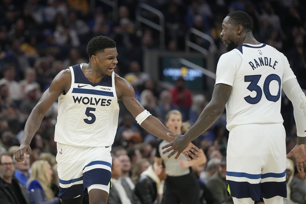 本场比赛,爱德华兹表现不错,在上半场慢热的情况下及时调整,下半场狂轰28分带队取胜,44分钟的出场时间里,投篮28中13,三分球14中5,罚球8中5,拿到36分4篮板4助攻1盖帽的数据。兰德尔出战40分钟,23投10中,三分6中1,罚球3中3砍下24分10篮板12助攻3抢断,达成生涯首个季后赛三双,12个助攻也创了生涯季后赛单场新高。