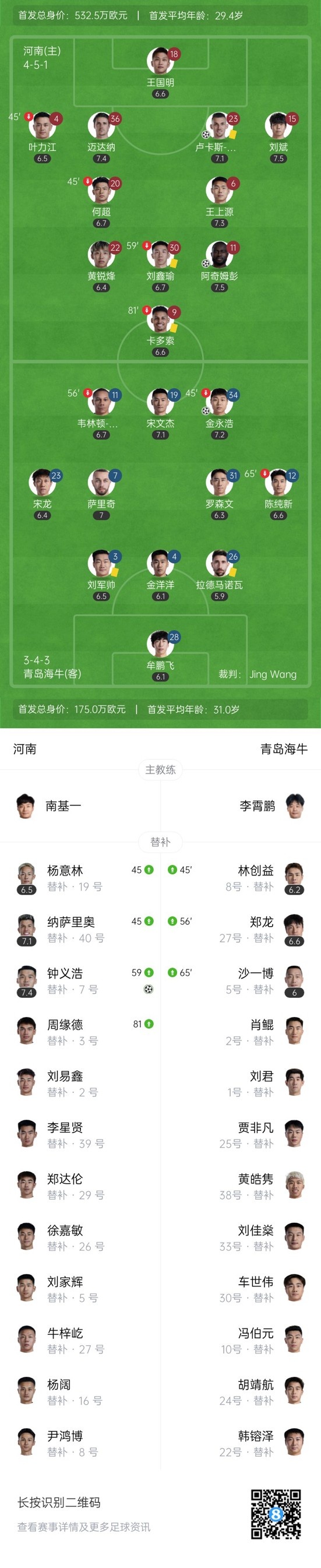 第24分钟,青岛海牛反客为主!宋文杰右路下底传到门前金永浩跟上头球破门,河南0-1青岛海牛。↓