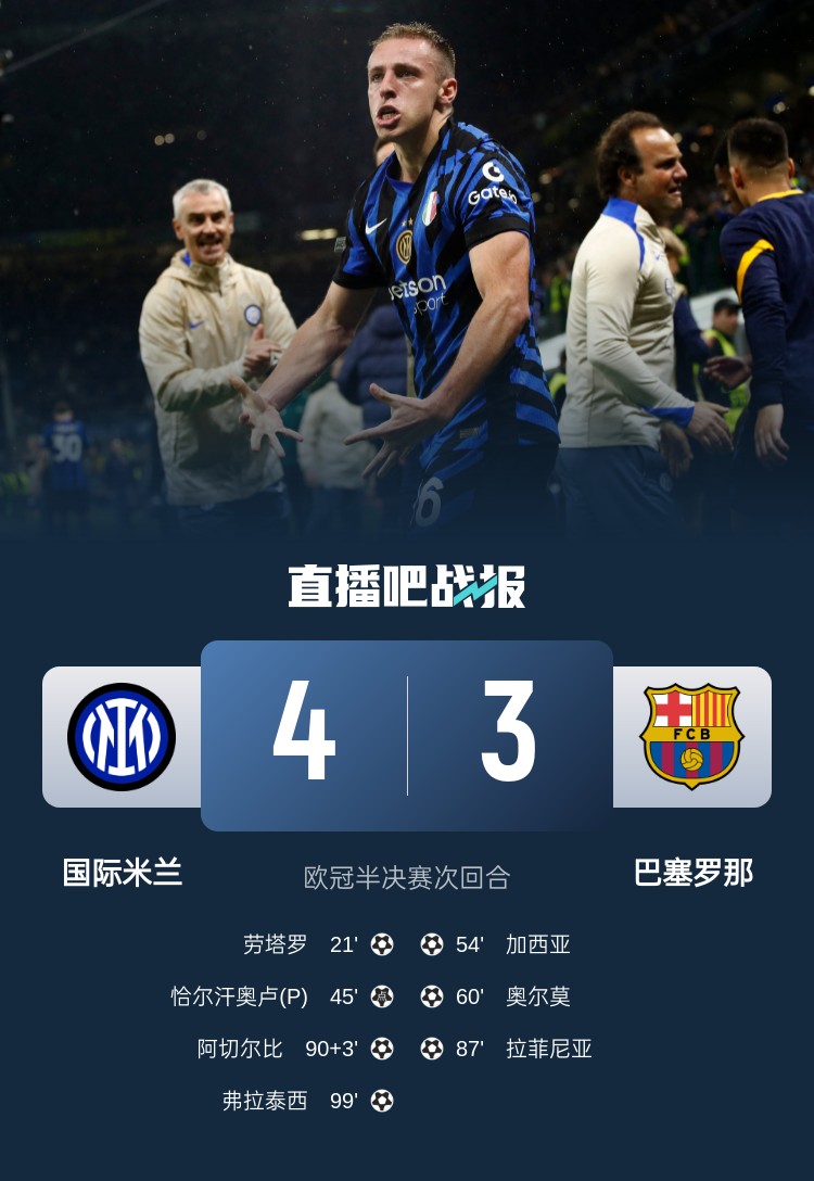 05月07日讯 今日凌晨欧冠半决赛次回合,上演史诗级对决,国米4-3加时赛战胜巴萨,晋级决赛,回顾此前Deepseek对于本场比赛过程和结果的预测,竟出奇相符。