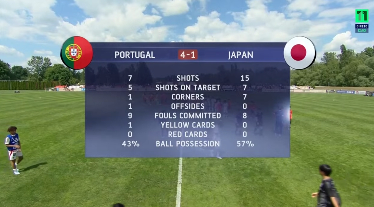 葡萄牙U15国家队4-1日本U15全场数据↓