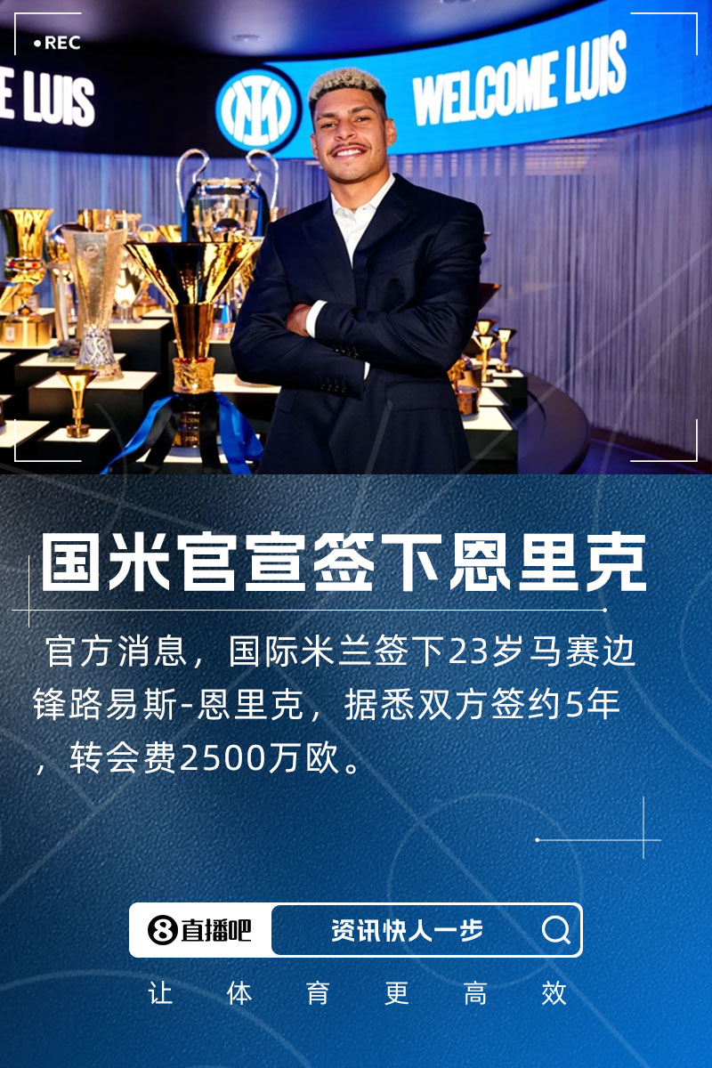 据此前罗马诺消息,恩里克转会费总价2500万欧,球员将与国米签约5年。