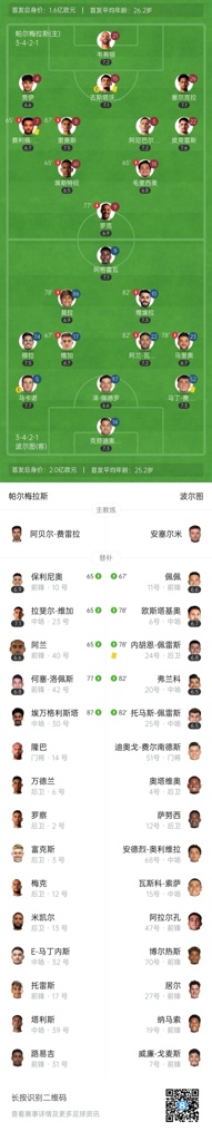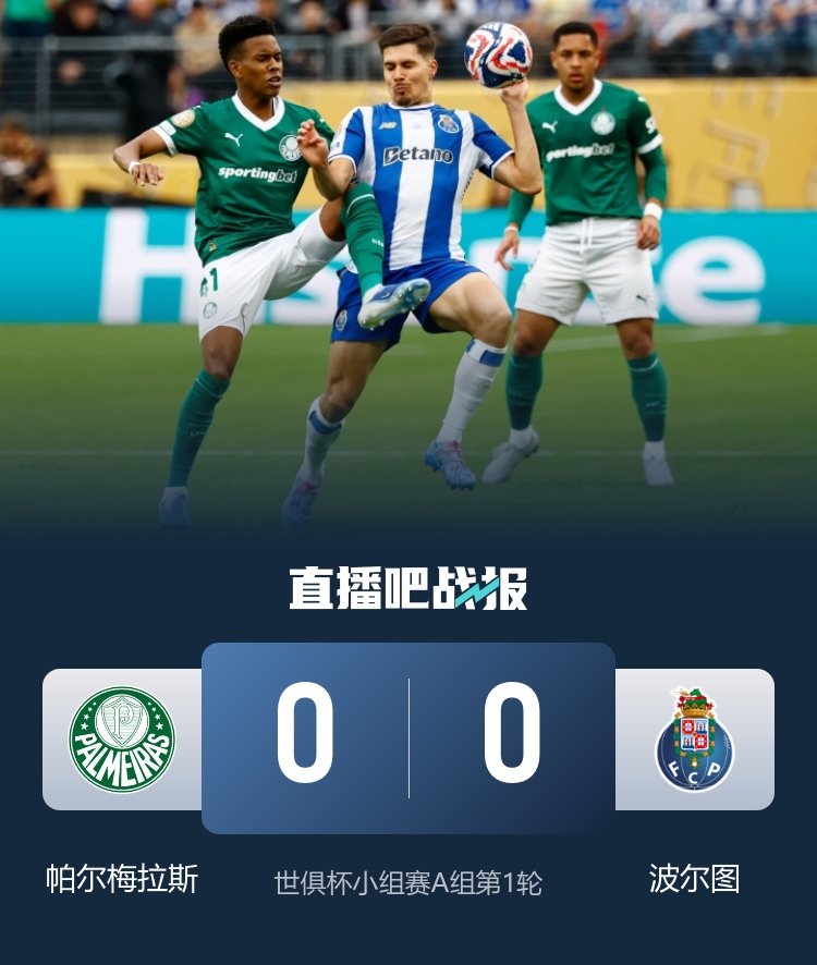 全场比赛结束,帕尔梅拉斯0-0波尔图。