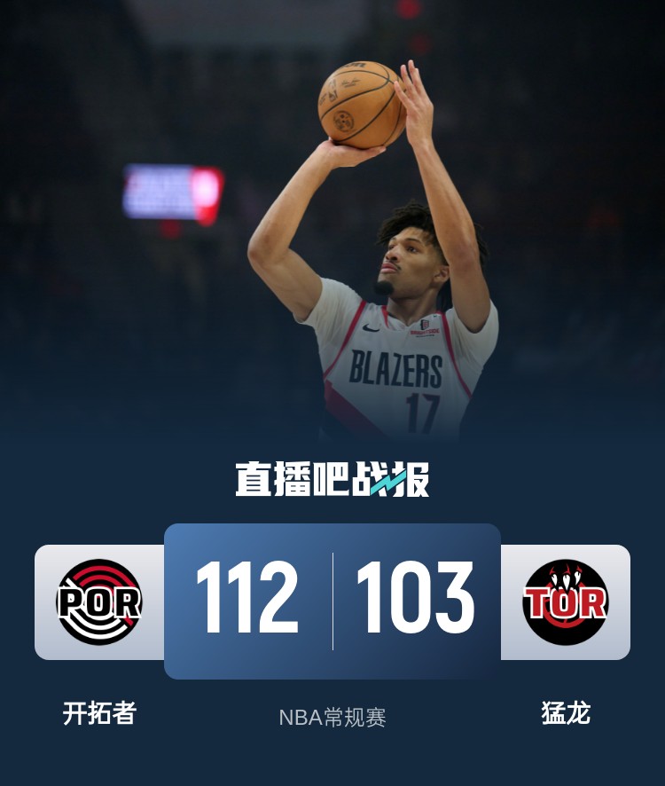 4月4日讯 NBA常规赛,开拓者对阵猛龙,开拓者上场击败老鹰,猛龙上场输给公牛。