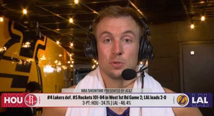 4月22日讯 NBA季后赛,湖人在主场以101-94击败火箭,大比分2-0领先。赛后肯纳德连线演播室接受了媒体采访,以下为采访全文。
