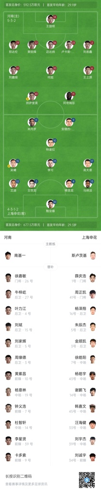 03月29日讯 今日18:00,中超第3轮,河南坐镇主场对阵上海申花。赛前,两队首发名单出炉!