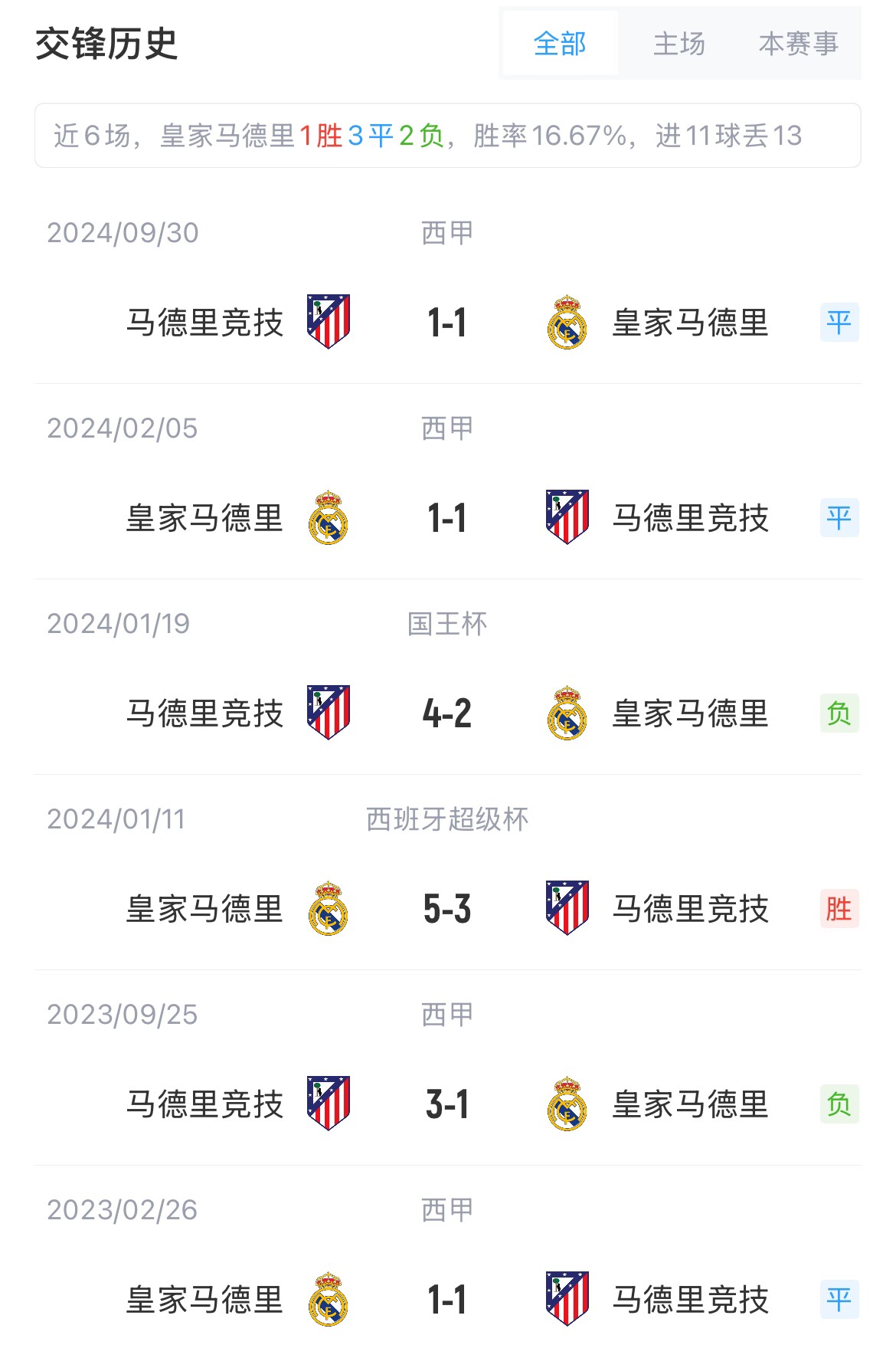 【两队交锋史】