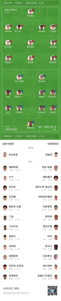 2月9日讯 西甲第23轮迎来马德里德比,皇马主场对阵马竞,赛前首发公布。