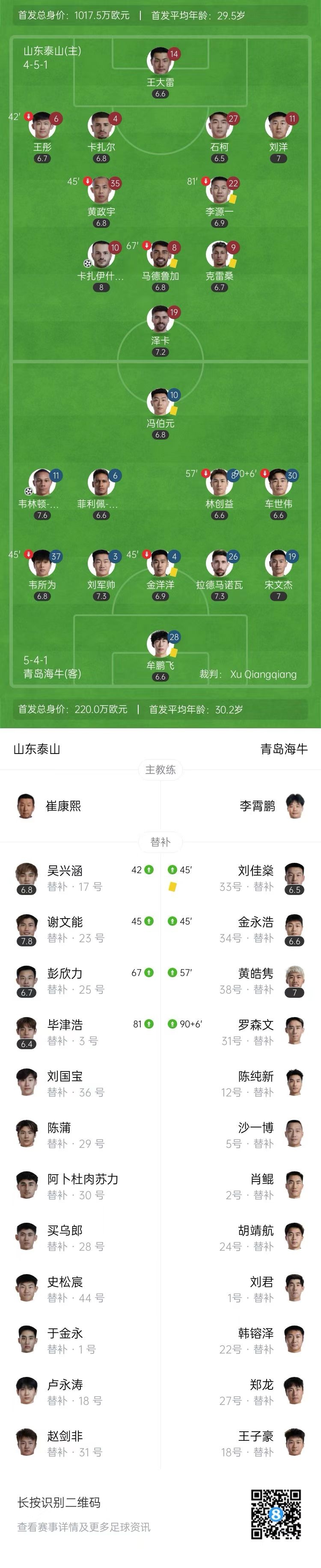 3轮不胜!泰山1-1遭海牛逼平 海牛4平6负仍不胜卡扎伊什维利破门