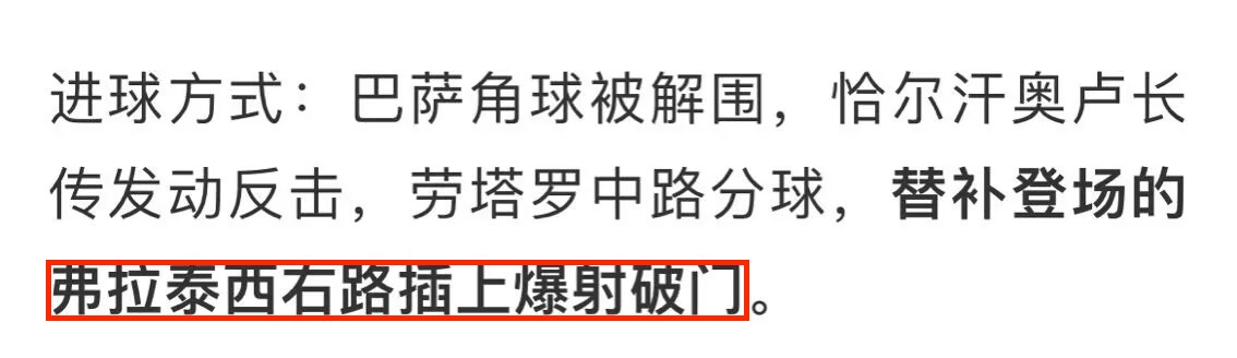 其次是弗拉泰西的加时绝杀,在昨天的预测文章当中,竟连进球方式也几乎猜对(弗拉泰西右路插上破门)。