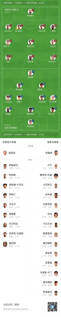 7月10日讯 世俱杯半决赛,巴黎对阵皇马,赛前首发公布。
