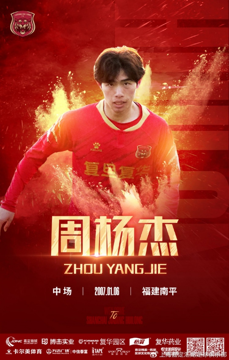 官宣|U21球员喻浩桢回归上海嘉定汇龙,07小将周杨杰上调至一线队